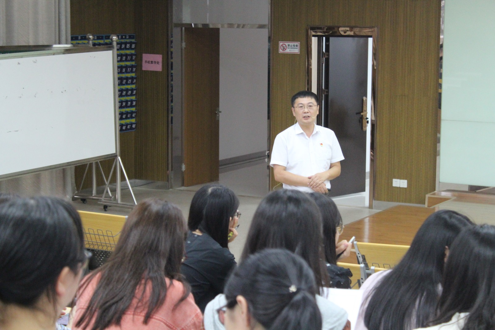 张老师的讲座使在场的每一位老师都受益匪浅,讲座结束后,第二党支部陈晨同志作总结。陈主任鼓励老师们树立学习意识、创新意识和教科研意识。随着素质教育的推进和课程改革的深入,作为一线教师,我们要树立“教师即研究者”的新理念,去观察自己身边的人和事,去研究学生和课堂,从而成为教科研的主体。