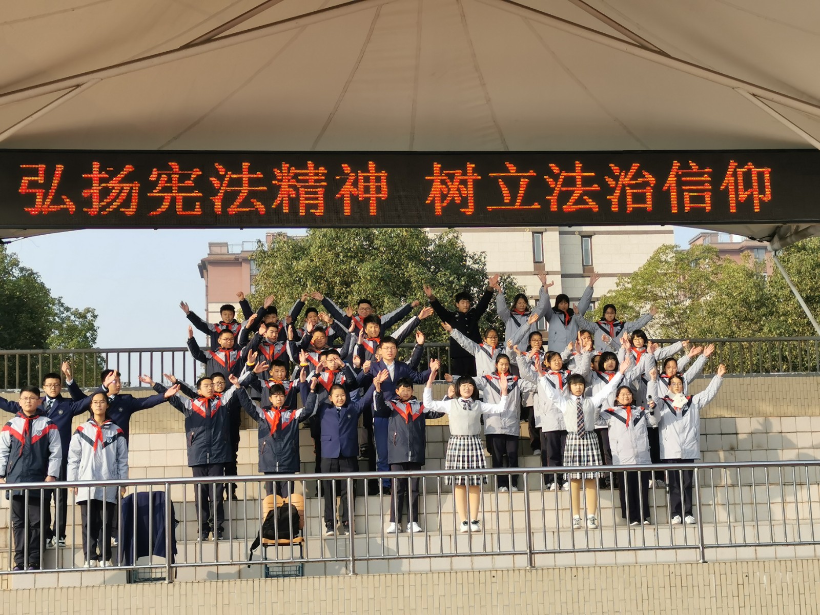 为贯彻落实习近平总书记关于宪法学习宣传教育的系列重要精神,进一步在青少年学生中普及宪法知识、弘扬宪法精神、树立宪法权威,在全国宪法日到来之际,我校在11月30日举行了“弘扬宪法精神,树立法治信仰”的主题晨会。