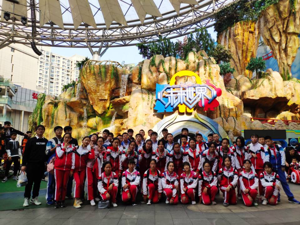 在那里,一切都显得那样令人神往,高大如巨人的摩天轮,惊险刺激的激流勇进,充满科技感的VR厅。在如梦如幻的冰雪城堡里,物理老师甚至将知识与游赏结合到了一起,研究了有趣的物理现象。也有同学战胜了自己的恐惧,勇敢地挑战从前不敢完成的困难,更多同学是在秋实践的过程中增进了与同伴与老师的感情。