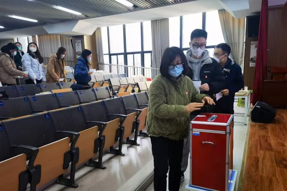 在监票人的监督下,最终选举产生印剑、戎俊、沈静盈、张素珍、袁文婧、翁德强、常灵等7位同志当选为新一届党总支委员。休会期间,新一届总支委员召开了第一次委员会议,等额选举出翁德强同志为新一届党总支书记,印剑同志为副书记。