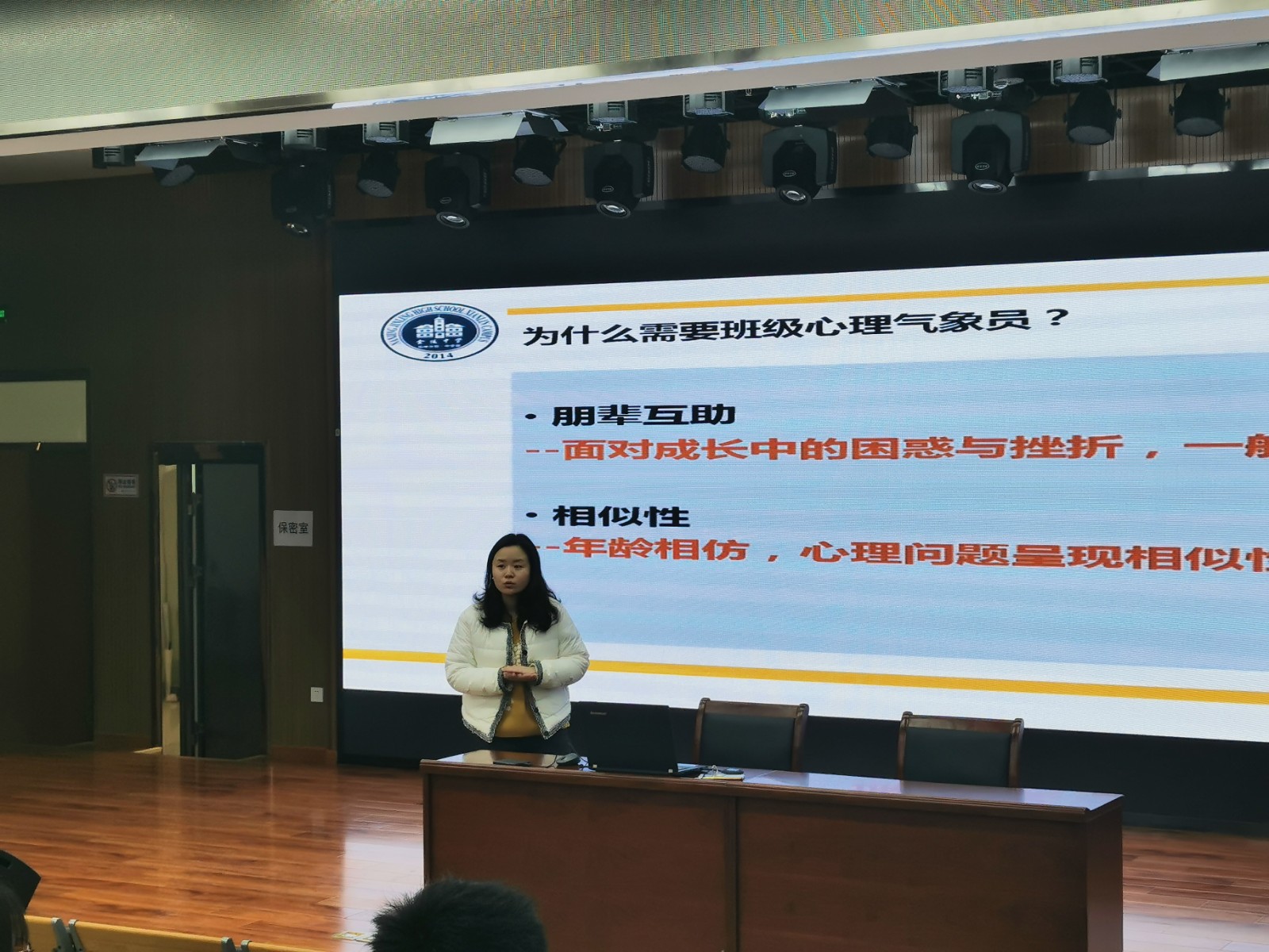 基于全员心育的要求,3月4日中午,我校心理健康教育中心在汇文楼三楼召开了心理气象员培训。会议由我校心理健康教育中心毛亚玲主任主持。她特别强调了心理健康教育工作的重要性。作为班级的心理气象员,大家承担着重要的使命,这份职责十分神圣。
