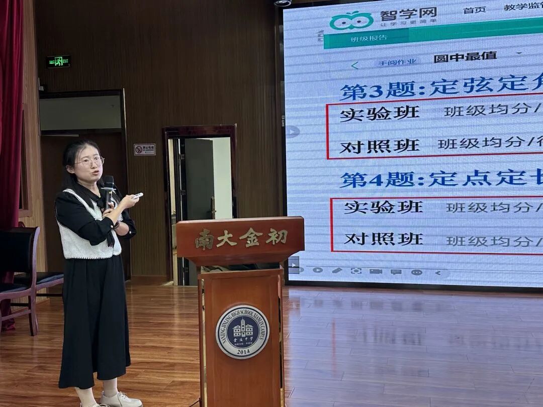 卢培老师代表金中仙林的数学团队,汇报了思维导图应用的实证调研,通过数据定量分析,参照学生个体前后变化,理性分析了思维导图的应用效能。