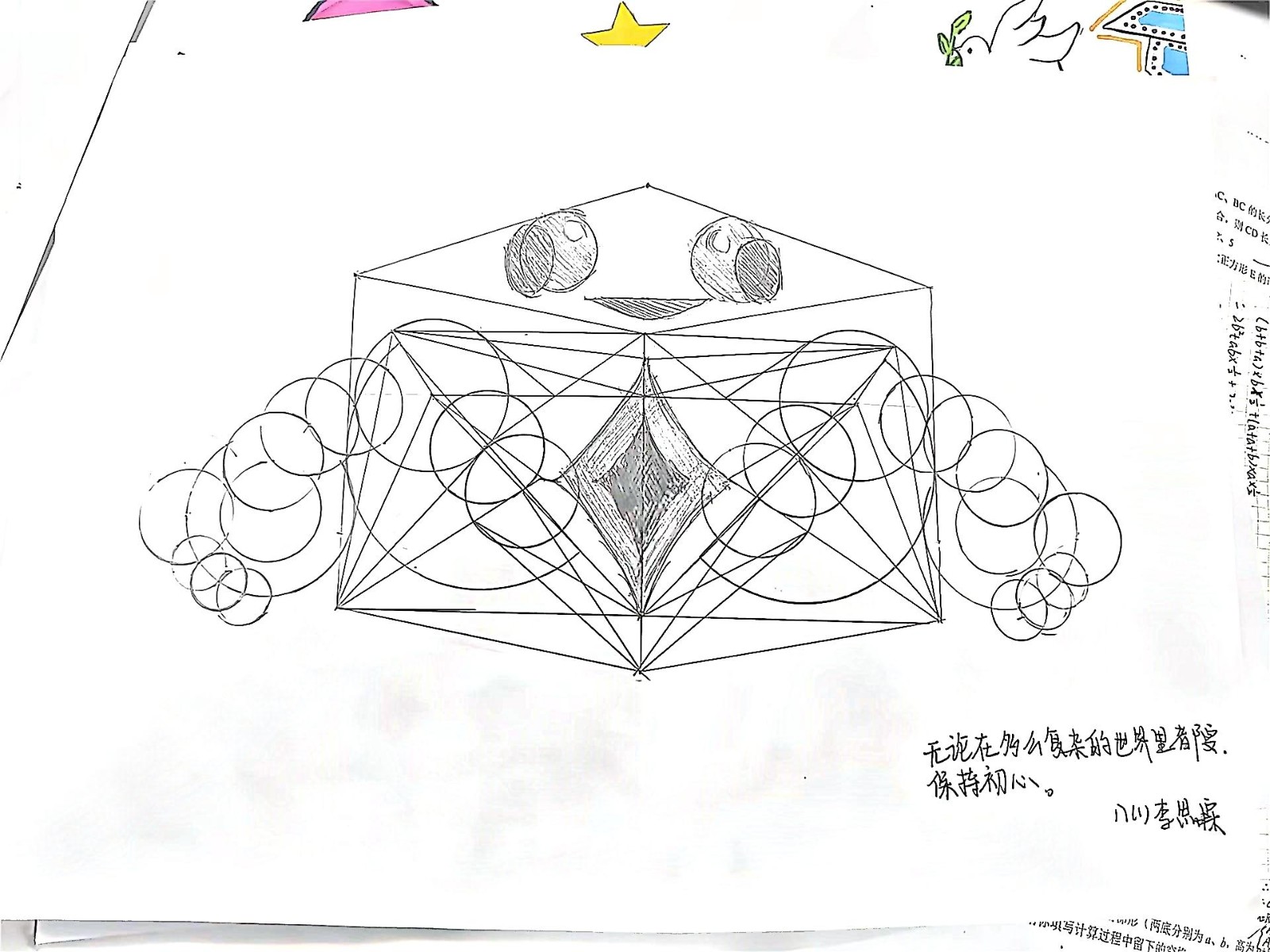 “对称”在数学上的表现是普遍的 为了让学生感受到数学之美 使学生跳出固有的思维不断进行思考和创新 八年级数学组在国庆假期期间 举行了“轴对称图形设计大赛”。学生们兴趣盎然 非常踊跃地参加比赛 设计出了许多理念很好、富有想象力的作品。