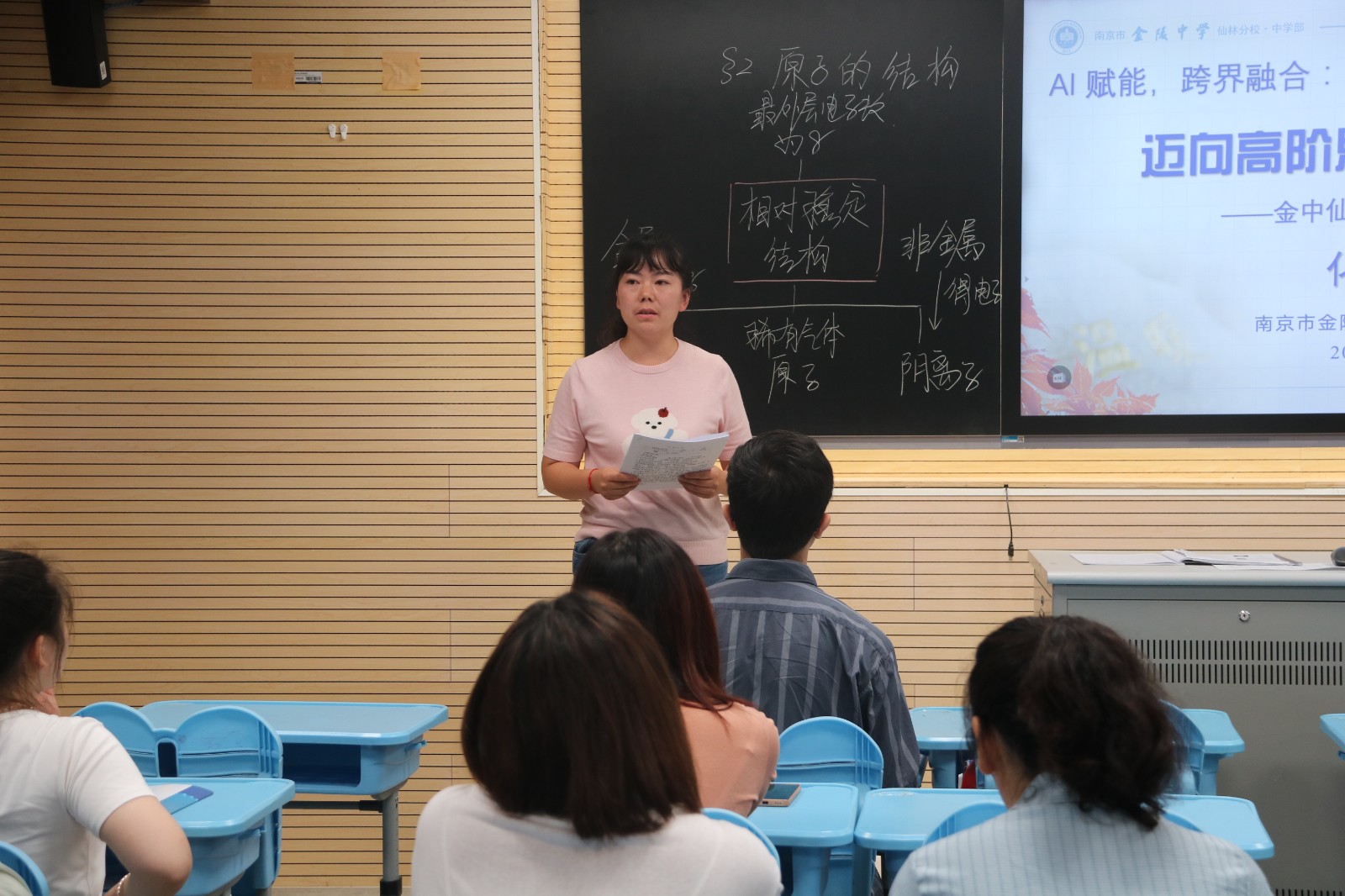 教师点评环节中伊宁三十七中的赵老师表示,本节课条理清晰,逻辑严密,AI的使用充分吸引学生兴趣;我校秦浩涵老师认为本节课充分展现了知识的生成,通过问题引导逐步搭建知识框架;曹晶晶老师认为课例通过不断的发展的科学内容展现了对学生批判性思维的培养;巫静主任则从生物学科出发,说明了原子结构的重要性,以及其在初高中生物中的体现。