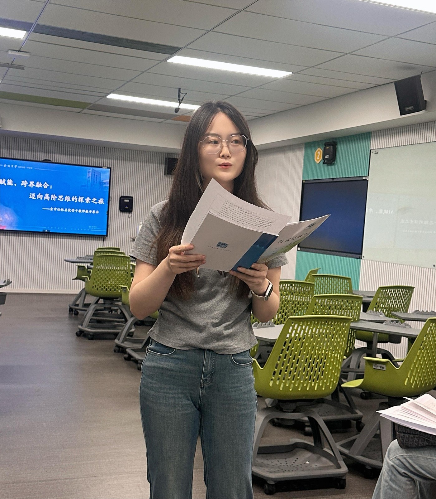 教师点评环节中,我校黄小霞副校长认为该节课体现了三个“看见”,即看见学生,看见素养,看见融合。南外仙林语文教研组长刘老师评价这堂课通过AI赋能传统古诗词教学,体现了教学创新,展示了文化自信。我校罗丹老师围绕课堂中的一个具体教学问题,发表了自己的见解,表达了多元化分析问题的观点。