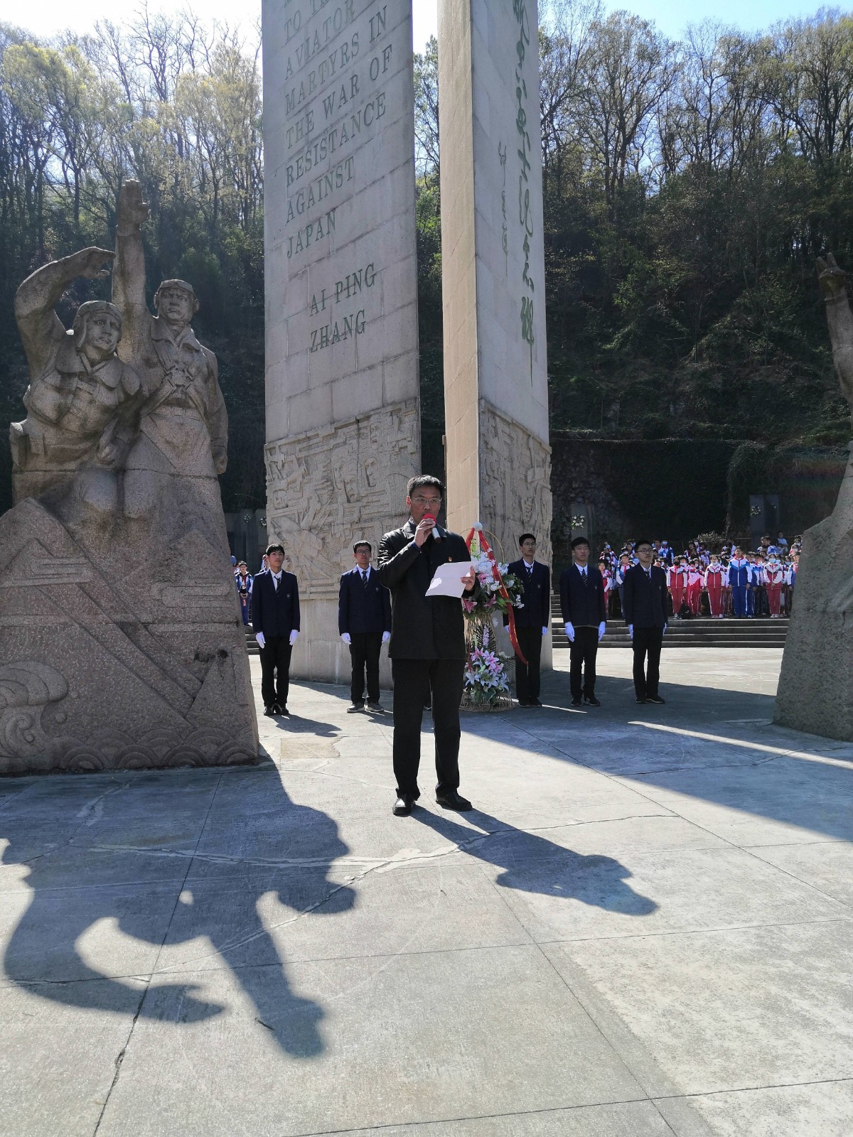 时值清明节前夕,我校近1300名师生怀着崇敬的心情,来到抗日航空烈士纪念碑前,深切缅怀革命先烈的丰功伟绩,弘扬先烈的崇高精神,寄托我们的哀思,告慰他们的在天之灵。